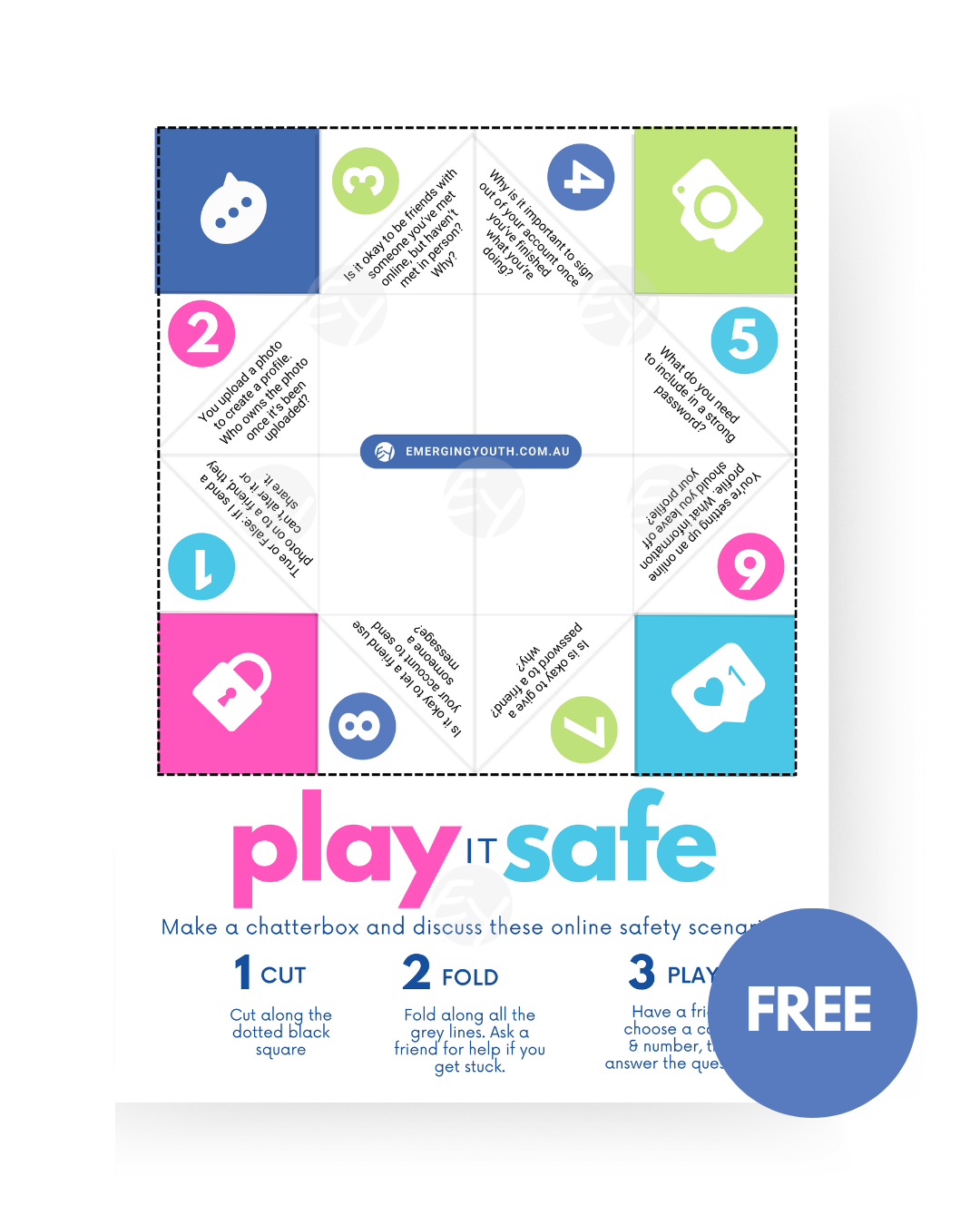 Free Downloads Grab a couple of downloads to use with your class, with an individual student or your child! Play It Safe Chatterbox Play It Safe Services and Resources Sheet